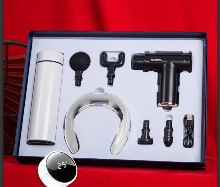 ست هدیه ماساژور تفنگی و گردنی و ماگ استیل