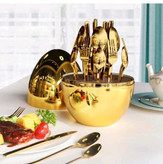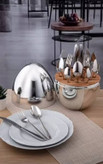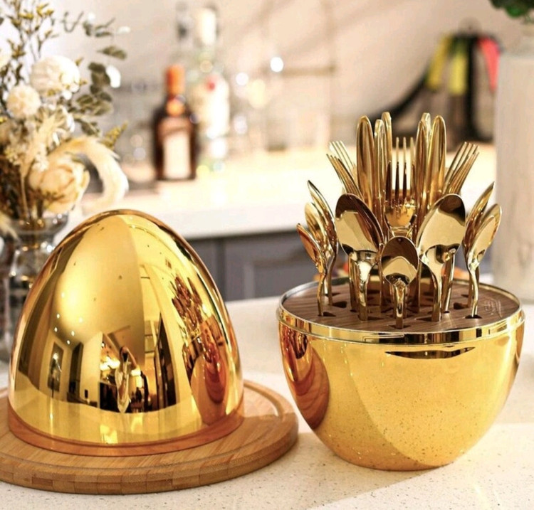 متاسفانه این کالا در حال حاضر موجود نیست. میتوانید از طریق لیست بالای صفحه، از محصولات مشابه این کالا دیدن نمایید.سرویس 25پارچه قاشق چنگال غذاخوری استیل با استند طرح تخم مرغ رنگ طلایی و سیلور✅