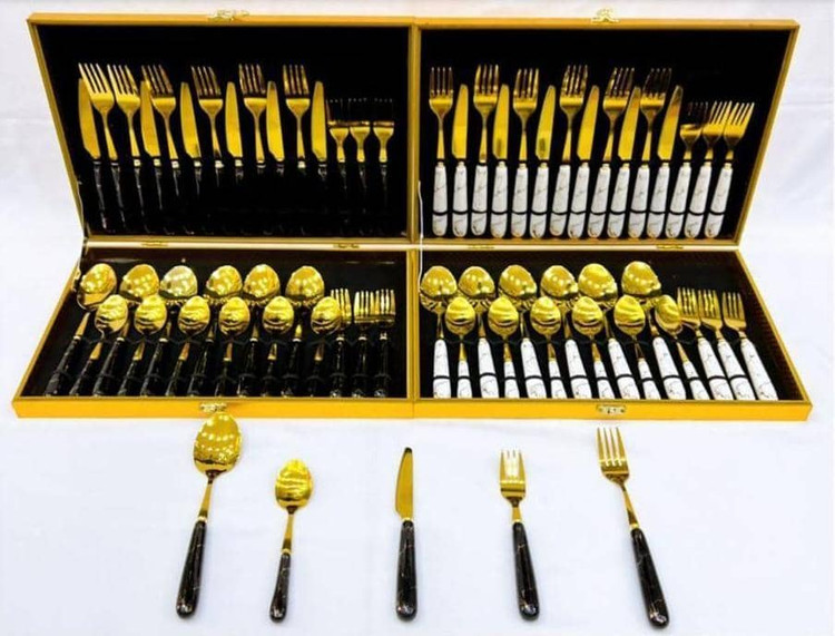 قاشق چنگال طلایی ماربل سفید و مشکی 31پارچه